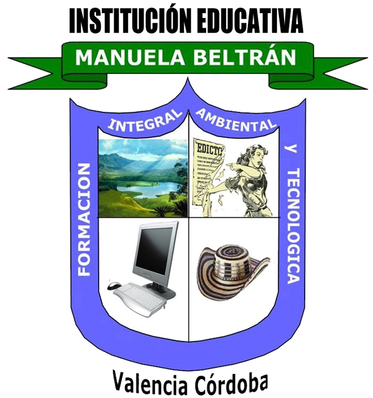 En la parte superior derecha está la ilustración de Manuela Beltrán, Heroína del pueblo, en memoria a ella ésta Institución Educativa recibe su nombre.